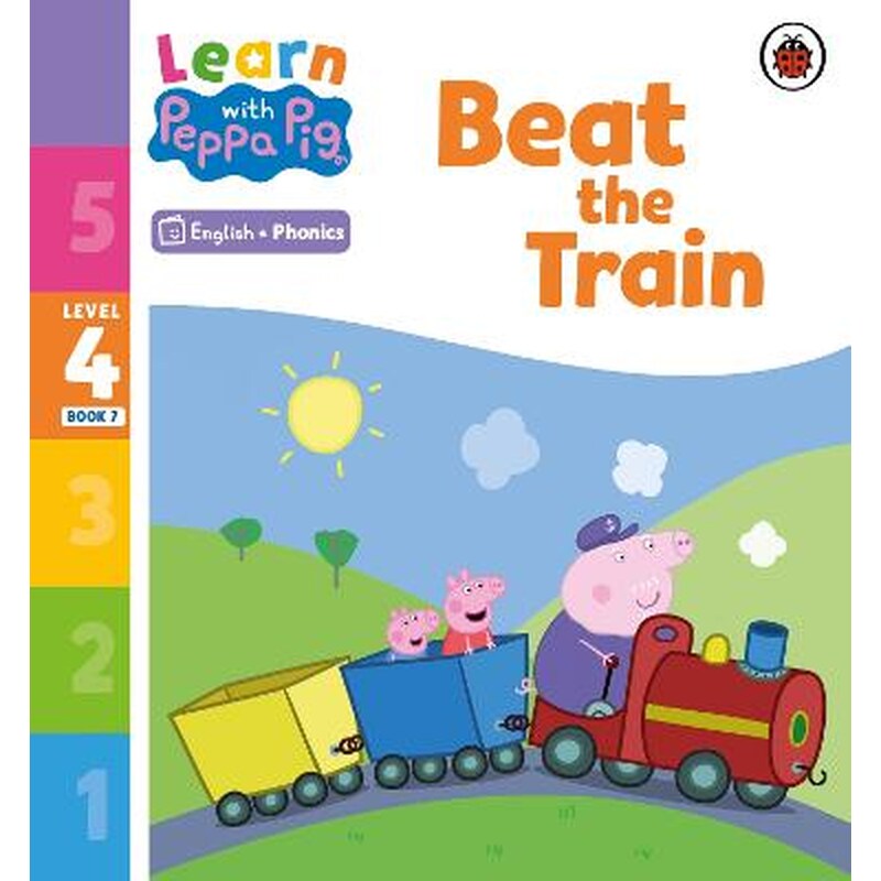 Learn with Peppa phonics reading books provide decodable stories to take young readers from first letter sounds to phonics fluency, through five expertly graded levels.- Peppa and her friends take centre stage in this brand-new series of 70 phonics readers - Five levels of stories introduce letters and sounds in the order they are taught at school - Fun activities provide extra phonics practice and check understanding of the story - Each Learn with Peppa phonics book has been developed by educational experts - Access online audio, phonics resources and additional guidance on the Learn with Peppa website Let Peppa support your little ones on their early learning adventure in Learn with Peppa.Level 4 Book 7 practises known letter sounds and alternative vowel pronunciations.Miss Rabbit thinks her big train can beat Grandpa Pig\'s little train.
