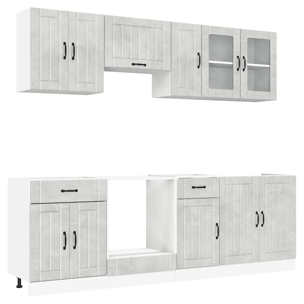 Αυτό το σετ ντουλαπιών κουζίνας 8 τεμαχίων, με τον κομψό σχεδιασμό του, βελτιστοποιεί τον χώρο της κουζίνας σας και παρέχει άφθονο χώρο αποθήκευσης για τα προσωπικά σας αντικείμενα! Σταθερό και ανθεκτικό υλικό: Το επεξεργασμένο ξύλο είναι ένα ανθεκτικό και σταθερό υλικό με λεία επιφάνεια που είναι ανθεκτική στην υγρασία, τη στρέβλωση και το σκίσιμο, καθιστώντας το μια αξιόπιστη επιλογή για μια ποικιλία έργων.Άφθονος αποθηκευτικός χώρος: Το σετ ντουλαπιών κουζίνας διαθέτει πολλά διαμερίσματα και προσφέρει επαρκή χώρο για την αποθήκευση μπολ, πιάτων, κατσαρολών και άλλων συσκευών κουζίνας.Ρυθμιζόμενα πόδια: Τα κάτω ντουλάπια διαθέτουν ρυθμιζόμενα πόδια που μπορούν να ρυθμιστούν σε ύψος ώστε να ταιριάζουν στη διάταξη της κουζίνας σας.Εύκολη συντήρηση: Χάρη στην λεία επιφάνειά τους, αυτά τα ντουλάπια κουζίνας καθαρίζονται εύκολα με ένα υγρό πανί και απαιτούν λιγότερη συντήρηση. Προειδοποίηση:Αυτό το προϊόν πρέπει να ασφαλιστεί εγκαθιστώντας έναν πάγκο εργασίας. Καλό για γνωρίζετε:Οι βίδες και τα βύσματα για το εσωτερικό του τοίχου δεν περιλαμβάνονται. Αναζητήστε και χρησιμοποιήστε βίδες και βύσματα κατάλληλα για τους τοίχους σας. Εάν δεν είστε σίγουροι, ζητήστε επαγγελματική συμβουλή. Διαβάστε και ακολουθήστε προσεκτικά κάθε βήμα των οδηγιών.Ο πάγκος εργασίας, ο νεροχύτης και η βρύση δεν περιλαμβάνονται στην παράδοση.