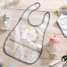 Αδιάβροχη σαλιάρα, διάφανη με γκρι λεπτομέρειες και σχέδιο με συννεφάκι. Είναι κατασκευασμένη από 100% υλικό EVA, που καθαρίζεται απλά με σφουγγάρι και νερό. Κλείνει και ανοίγει εύκολα με velcro. Είναι πρακτική, καθαρίζεται εύκολα και ιδανική για προστασία από ανεπιθύμητους λεκέδες.