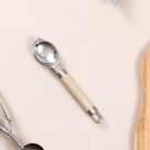 Κουτάλι σερβιρίσματος παγωτού από ανοξείδωτο υλικό σε μοντέρνο μπεζ χρώμα. Απαραίτητο και πρακτικό εργαλείο κουζίνας για καθημερινή χρήση.