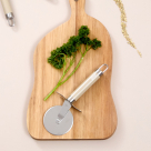 Κόφτης πίτσας από ανοξείδωτο υλικό σε μοντέρνο μπεζ χρώμα. Απαραίτητο και πρακτικό εργαλείο κουζίνας για καθημερινή χρήση.