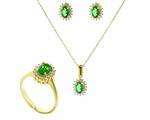 Εντυπωσιακό σέτ κολιέ δαχτυλίδι σκουλαρίκια από επιχρυσωμένο ασήμι με πέτρες ζιργκόν