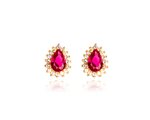 Σκουλαρίκια στρογγυλλά από επιχρυσωμένο ασήμι με πέτρες ζιργκόν σε χρώμα κόκκινο