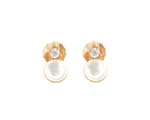 Σκουλαρίκια καρφωτά γυναικεία με μαργαριτάρι και ζιργκόν στο πάνω μέρος από ρόζ επιχρυσωμένο ασήμι
