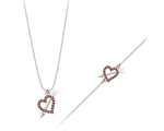Σέτ κοσμημάτων βραχιόλι και κολιέ συλλογή Love καρδιά με βέλος από ρόζ επιχρυσωμένο ασήμι με πέτρα EUROPEAN CRYSTALS