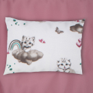 Βρεφική μαξιλαροθήκη φάκελος σε λευκό φόντο, με ροζ-πετρόλ λεπτομέρειες και σχέδιο γατούλα της εταιρείας Dimcol. Είναι κατασκευασμένη από 100% βαμβάκι 144 κλωστών που προσφέρει απαλότητα. Συνδυάστε την με τα υπόλοιπα είδη της ίδιας σειράς για ένα ολοκληρωμένο αποτέλεσμα.