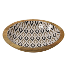 Στρογγυλό διακοσμητικό μπωλ από την εταιρεία Mod. Είναι κατασκευασμένο από ξύλο mango σε μπεζ χρώμα με μαύρο και εκρού γεωμετρικό σχέδιο σε λευκό φόντο. Ιδανικό για να δώσει μοναδικό στυλ στην διακόσμηση της κουζίνας, της τραπεζαρίας ή όποιου χώρου επιλέξετε να την τοποθετήσετε. Συνδυάστε το με τα υπόλοιπα είδη της ίδιας συλλογής για ένα ολοκληρωμένο αποτέλεσμα στο χώρο σας.