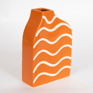 Διακοσμητικό βάζο από την εταιρεία Estheti σε πορτοκαλί χρώμα με λευκές λεπτομέρειες και μοντέρνο σχέδιο. Είναι κατασκευασμένο από κεραμικό υλικό. Μπορεί να χρησιμοποιηθεί για να τοποθετήσετε μέσα λουλούδια ή μόνο του σαν διακοσμητικό. Τοποθετήστε το στο σαλόνι, την τραπεζαρία ή σε οποιοδήποτε άλλο σημείο για να το διακοσμήσετε.