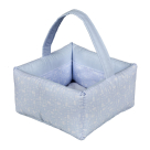 Καλαθάκι καλλυντικών της εταιρείας Κόσμος του Μωρού σε γαλάζιο χρώμα με λευκές λεπτομέρειες και μοντέρνο σχέδιο. Κατάλληλο για να εξοπλίσετε το έπιπλο της αλλαξιέρας με αποθηκευτικό χώρο για τις κρέμες και τα μωρομάντηλα του μωρού σας. Η εξωτερική του επένδυση είναι από 100% βαμβακερό ύφασμα και η γέμιση από πολυεστερική βάτα για να είναι σταθερό. Πλένεται στο πλυντήριο στους 30 βαθμούς.