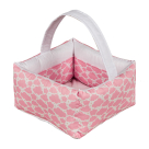 Καλαθάκι καλλυντικών από την εταιρεία Κόσμος του Μωρού σε ροζ χρώμα με λευκές λεπτομέρειες και μοντέρνο σχέδιο. Κατάλληλο για να εξοπλίσετε το έπιπλο της αλλαξιέρας με αποθηκευτικό χώρο για τις κρέμες και τα μωρομάντηλα του μωρού σας. Η εξωτερική του επένδυση είναι από 100% βαμβακερό ύφασμα και η γέμιση από πολυεστερική βάτα για να είναι σταθερό. Πλένεται στο πλυντήριο στους 30 βαθμούς.