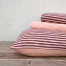 Σετ υπέρδιπλα μακό σεντόνια από την εταιρεία Nima σε 5 αποχρώσεις. Το ύφασμα είναι ελαστικό ζέρσευ από 100% βαμβάκι 160γραμ./τ.μ.. Το σετ περιλαμβάνει ένα ριγέ και ένα μονόχρωμο σεντόνι. Οι μαξιλαροθήκες φάκελος είναι διπλής όψης, με τη μία μεριά να είναι ριγέ και την άλλη μονόχρωμη. Συσκευασία σε υφασμάτινο πουγκί.