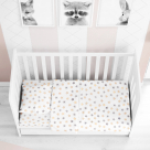 Βρεφική παπλωματοθήκη για την κούνια από την DimCol σε λευκό χρώμα και σχέδιο αστέρια με ροζ - γκρι λεπτομέρειες. Το ύφασμα είναι από 100% βαμβάκι 144 κλωστών. Είναι απαλή στην αφή, ανθεκτική στη χρήση και προστατεύει το πάπλωμα του μωρού σας. Συσκευασία Polybag.