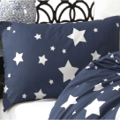 Μαξιλαροθήκη ύπνου της εταιρείας Dimcol σε μπλε χρώμα με λευκές λεπτομέρειες και σχέδιο ψηφιακής εκτύπωσης αστέρια. Η σύνθεση του υφάσματος είναι από 70% βαμβάκι-30% polyester 144 κλωστών, που προσφέρει απαλότητα, ανθεκτικότητα και ποιότητα σε προσιτή τιμή. Συσκευασία Polybag. Ελληνικής κατασκευής. **Το σχέδιο στην μαξιλαροθήκη ενδέχεται να διαφέρει από αυτό της φωτογραφίας καθώς η εταιρεία παράγει μαξιλαροθήκες από όλο το σχέδιο του υφάσματος και τις συσκευάζει με τυχαία σειρά.**