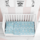 Βρεφικό σεντόνι για την κούνια του μωρού σας από την εταιρεία Dimcol σε γαλάζια απόχρωση με χαριτωμένα αστεράκια και φεγγαράκια σε γκρι και λευκό χρώμα. Σύνθεση από 100% βαμβάκι 144 κλωστών, που προσφέρει απαλότητα και ανθεκτικότητα. Διαθέτει λάστιχο για μεγάλη σταθερότητα. Ιδανικό για αγόρια. Συσκευασία Polybag. Ελληνικής κατασκευής.