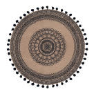 Στρογγυλό σουπλά με έθνικ σχέδιο και περιμετρικά πον-πον. Το υλικό κατασκευής είναι 100% γιούτα σε φυσική απόχρωση με μαύρες λεπτομέρειες. Χρησιμοποιείται για το φαγητό και για να προστατεύσει επιφάνειες, όπως το τραπέζι, το πάσο, κλπ.