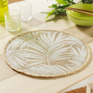 Ψάθινο σουπλά σε φυσική απόχρωση και λευκό τροπικό σχέδιο. Είναι κατασκευασμένο από φυσικό υλικό Jute σε στρογγυλό σχήμα. Χρησιμοποιείται για να προστατεύσει επιφάνειες, όπως το τραπέζι, το πάσο, κλπ, και να διακοσμήσει το χώρο σας.