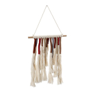 Διακοσμητικό τοίχου από την εταιρεία Espiel κατασκευασμένο από ξύλο οξιάς και πλεκτά βαμβακερά σχοινιά σε εκρού χρώμα με κόκκινες-μπεζ-χρυσές λεπτομέρειες. Ένα διακοσμητικό με έθνικ ύφος που θα δώσει μοναδική όψη στην διακόσμηση του σαλονιού, της κρεβατοκάμαρας ή όποιου χώρου επιθυμείτε.