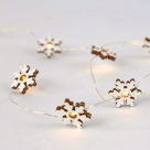 Διακοσμητική γιρλάντα με φωτάκια Led της εταιρείας Aca Decor. Είναι κατασκευασμένη από ξύλο και διαθέτει ασημί καλώδιο χαλκού. Έχει 10 Led λαμπάκια σε σχήμα αστεριού σε λευκό χρώμα και είναι κατάλληλη να στολίσει χριστουγεννιάτικα όλους τους χώρους του σπιτιού. Λειτουργεί με 2 μπαταρίες AA LR6, οι οποίες δεν περιλαμβάνονται. Το συνολικό μήκους του καλωδίου είναι 120εκ. και διαθέτει στο τέλος του διακόπτη ON/OFF. Φέρει ενσωματωμένες πλακέτες Led συνολικής ισχύος 0.60Watt, λευκού θερμού φωτός (3000K). *Το φωτιστικό απεικονίζεται με αναμμένο φως ( θερμό λευκό).*