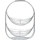 Διώροφη φρουτιέρα σε ασημένιο χρώμα και χερούλι για να μπορεί να μεταφερθεί. Είναι μεταλλική και ιδανική για την τοποθέτηση φρούτων.