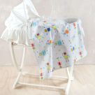 Σεντόνι για το λίκνο ή την καλαθούνα του μωρού σε λευκό χρώμα, με πολύχρωμες λεπτομέρειες και σχέδιο ρομποτάκια από την εταιρεία Rythmos. Είναι κατασκευασμένο από 100% βαμβάκι που το καθιστά απαλό και ανθεκτικό. Συνδυάστε το με τα υπόλοιπα είδη της σειράς για ένα ολοκληρωμένο αποτέλεσμα στο βρεφικό δωμάτιο.