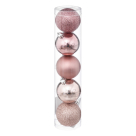 Χριστουγεννιάτικα στολίδια μπάλες σετ 5 τεμαχίων σε ροζ χρώμα. Είναι κατασκευασμένες από πλαστικό υλικό. Το σετ αποτελείται από 2 μπάλες με γκλίτερ, 2 με γυαλιστερό φινίρισμα και 1 ματ. Συνδυάστε διαφορετικά σετ με στολίδια για μία μοναδική γιορτινή διακόσμηση στο δέντρου σας.