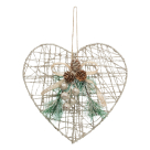 Χριστουγεννιάτικο κρεμαστό διακοσμητικό με σχήμα καρδιάς σε μπεζ χρώμα με πράσινες λεπτομέρειες. Έχει μεταλλικό σκελετό και μέρη από jute. Συνδυάστε το με την υπόλοιπη χριστουγεννιάτικη διακόσμησή σας για μια ολοκληρωμένη εορταστική ατμόσφαιρα.
