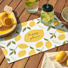 Σουπλά σε λευκό χρώμα και κίτρινο-πράσινο σχέδιο με λεμόνια. Είναι κατασκευασμένο από πλαστικό υλικό. Χρησιμοποιείται για το φαγητό και για να προστατεύσει επιφάνειες, όπως το τραπέζι, το πάσο, κλπ. Συνδυάστε το με την υπόλοιπη διακόσμηση και δώστε στυλ και χαρακτήρα στο χώρο σας.