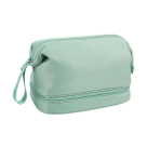Νεσεσέρ από την εταιρεία Amber σε πράσινο χρώμα. Είναι κατασκευασμένο από polyester. Το ύφασμα του είναι αδιάβροχο. Αποτελείται από έναν ενιαίο ευρύχωρο χώρο που κλείνει με φερμουάρ. Έχει 3 εσωτερικά τσεπάκια για να οργανώσετε καλύτερα τα αντικείμενα. Η μπανέλα που έχει στο εσωτερικό βοηθά στο να παραμένει διάπλατα ανοιχτό. Επίσης, έχει υποδοχές για πινέλα στο κάτω μέρος, με προστασία για λερώματα. Διαθέτει λαβή μεταφοράς στο πλαϊνό μέρος. Είναι ιδανικό για να οργανώσετε τα πράγματά σας στην τσάντα παραλίας, στην βαλίτσα, στο ντουλάπι, κλπ. Χωρητικότητα 6.6 λίτρα.