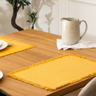 Σουπλά σε κίτρινο χρώμα και διακοσμητικά κρόσια. Είναι κατασκευασμένο από 100% βαμβάκι. Χρησιμοποιείται για το φαγητό και για να προστατεύσει επιφάνειες, όπως το τραπέζι, το πάσο, κλπ.