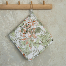 Πιάστρα κουζίνας της εταιρείας Nima με φλοράλ σχέδιο ψηφιακής εκτύπωσης. Η σύνθεσή του είναι 100% βαμβάκι σε πράσινες και ροζ αποχρώσεις. Διαθέτει θηλειά για να κρεμιέται. Είναι ιδανικό για να αποφύγετε ανεπιθύμητα καψίματα στην κουζίνα. Συνδυάστε το με τα υπόλοιπα προϊόντα της συλλογής για ένα ολοκληρωμένο αποτέλεσμα.