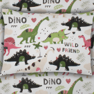 Βρεφική μαξιλαροθήκη φάκελος σε εκρού φόντο, με πράσινες-μαύρες-φούξια λεπτομέρειες και σχέδιο δεινόσαυροι από την εταιρία Dimcol. Είναι κατασκευασμένη από 100% βαμβάκι 144 κλωστών που την καθιστά απαλή και ανθεκτική. Συνδυάστε την με τα υπόλοιπα είδη της ίδιας σειράς για ένα ολοκληρωμένο αποτέλεσμα. Συσκευασία polybag.