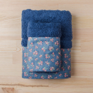 Πετσέτες μπάνιου σετ 3 τεμάχια, σε μπλε χρωμα και φλοράλ φάσα στο τελείωμα. Κατασκευασμένες από 100% εξαιρετικό βαμβακερό ύφασμα, βάρους 500gsm, που τις κάνει απαλές και απορροφητικές.