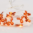 Χριστουγεννιάτικη διακοσμητική γιρλάντα με φωτάκια Led της εταιρείας Aca Decor. Είναι κατασκευασμένη από ασημί καλώδιο χαλκού. Έχει 20 Led λαμπάκια σε σχήμα ταράνδου σε καφέ χρώμα και είναι κατάλληλη να στολίσει χριστουγεννιάτικα όλους τους χώρους του σπιτιού. Λειτουργεί με 2 μπαταρίες AA LR6, οι οποίες δεν περιλαμβάνονται. Το συνολικό μήκους του καλωδίου είναι 170εκ. και διαθέτει στο τέλος του διακόπτη ON/OFF. Φέρει ενσωματωμένες πλακέτες Led συνολικής ισχύος 0.9Watt, λευκού θερμού φωτός (3000K). *Το φωτιστικό εικονίζεται με αναμμένο φως (θερμό λευκό).*