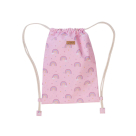 Τσάντα πλάτης αδιάβροχη σε ροζ χρώμα, με μωβ-γαλάζιες λεπτομέρειες και σχέδιο ουράνιο τόξο από την εταιρεία Saro. Κατασκευασμένη από 100% ανακυκλωμένη ρητίνη πολυεστέρα, που την καθιστά ιδιαίτερα ανθεκτική και ανακυκλώσιμη. Οι λαβές του είναι ρυθμιζόμενες και έχει επίσης μια πρακτική εσωτερική τσέπη για να αποθηκεύει τα πιο ευαίσθητα πράγματα. Ιδανική για τις εμφανίσεις του παιδιού σας στην παραλία με ποιότητα και στυλ.
