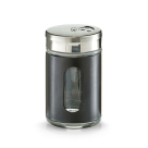 Βαζάκι μπαχαρικών κατασκευασμένο από γυαλί και ανοξείδωτο ατσάλι σε μαύρο χρώμα. Έχει καπάκι που κλείνει αεροστεγώς για να παραμένουν τα μπαχαρικά φρέσκα, χωρίς να χάνουν το άρωμά τους. Το καπάκι είναι περιστρεφόμενο και μπορείτε να ρυθμίσετε την ποσότητα που θέλετε να πέφτει. Χωρητικότητα: 90gr. Συνδυάστε το με τα υπόλοιπα είδη της ίδιας συλλογής για ένα ολοκληρωμένο αποτέλεσμα στη κουζίνα σας.