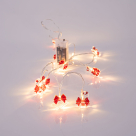 Χριστουγεννιάτικη διακοσμητική γιρλάντα με Led φωτάκια από την εταιρεία Eurolamp. Είναι κατασκευασμένη από PVC σε διάφανο χρώμα και διάφανα στολίδια με κόκκινες λεπτομέρειες. Έχει 10 mini Led λαμπάκια με θερμό λευκό φωτισμό που έχουν 10εκ. απόσταση μεταξύ τους. Έχει συνολικό μήκος 1.4 μέτρα εκ των οποίων τα 50εκ. είναι καλώδιο επέκτασης. Έχει βαθμό στεγανότητας IP20 που τη καθιστά κατάλληλη για εσωτερικούς χώρους. Λειτουργεί με 2 μπαταριές ΑΑ (δεν περιλαμβάνονται). Διαθέτει ενσωματωμένες πλακέτες Led συνολικής ισχύος 0.6Watt, θερμού λευκού φωτός (2400Κ-2700Κ).