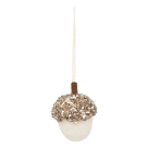 Χριστουγεννιάτικο στολίδι με σχήμα βελανιδιού. Είναι κατασκευασμένο από πολυεστερικό ύφασμα σε εκρού χρώμα με χρυσές χάντρες στο πάνω μέρος. Συνδυάστε στολίδια διαφόρων σχεδίων και χρωμάτων στο δέντρο σας για ένα μοναδικό χριστουγεννιάτικο αποτέλεσμα.