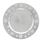 Χριστουγεννιάτικη πιατέλα διακόσμησης κατασκευασμένη από πολυπροπυλένιο σε ασημί απόχρωση. Έχει σχέδιο με χιονονιφάδες περιμετρικά. Ιδανική για να δώσει μία πινελιά πολυτέλειας στην χριστουγεννιάτικη διακόσμησή σας.