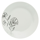 Ρηχό πιάτο φαγητού σε λευκό χρώμα με μαύρο φλοράλ σχέδιο, κατασκευασμένο από πορσελάνη. Ιδανικό για να δώσει μία μοντέρνα πινελιά στα γεύματα και την κουζίνας σας. Συνδυάστε το με τα υπόλοιπα είδη του ίδιου σχεδίου για ένα ολοκληρωμένο αποτέλεσμα.