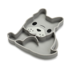Πιάτο με βεντούζα και χωρίσματα σε γκρι χρώμα και σχέδιο σκυλάκι από την εταιρία Melii. Κατασκευασμένο από 100% σιλικόνη χωρίς BPA, PVC, μόλυβδο και κάδμιο. Η βεντούζα που διαθέτει διευκολύνει το παιδί να φάει μόνο του, ενώ οι ανασηκωμένες άκρες διευκολύνουν τα παιδιά στο να μαζεύουν το φαγητό τους χωρίς να το σπρώχνουν από το πιάτο ή μέσα στο άλλο φαγητό. Επίσης με τα χωρίσματα στο πιάτο, μαθαίνουν την σωστή διατροφή και τα ισορροπημένα γεύματα που αποτελούνται από διάφορες ομάδες τροφίμων. Ιδανικό για μωρά που τρέφονται με τη μέθοδο σίτισης BLW(Baby Led Weaning). Κατάλληλο για παιδιά 6+ μηνών.