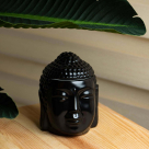 Συσκευή για αιθέρια έλαια με σχήμα Βούδα από την εταιρεία Scentchips by Corona di Fiori. Είναι κατασκευασμένη από κεραμικό υλικό σε μαύρο χρώμα, με καπάκι στο πάνω μέρος. Ιδανική για αρωματικά έλαια αλλά και wax melts. Τοποθετήστε νερό στο πάνω μέρος του αρωματιστή και μερικές σταγόνες από το έλαιο σας. Σε περίπτωση που χρησιμοποιήσετε wax melts, δεν χρειάζεται να προσθέσετε νερό. Στη συνέχεια τοποθετήστε ένα ρεσώ στο κάτω μέρος. Η επίστρωση πορσελάνης του αρωματιστή έχει την ιδιότητα να θερμαίνεται σταδιακά με αποτέλεσμα να διαρκεί περισσότερο η μυρωδιά του ελαίου.