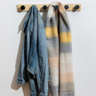 Κρεμάστρα τοίχου από την εταιρεία εstia. Είναι κατασκευασμένη από ξύλο πεύκου σε φυσική απόχρωση με μαύρα γαντζάκια. Τοποθετείται στον τοίχο με βίδες. Μπορείτε να την τοποθετήσετε σε έναν κενό τοίχο για να κρεμάτε τα πανωφόρια ή για να διακοσμήσετε τον χώρο σας.