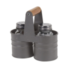 Δοχεία για αλάτι και πιπέρι με μοντέρνο σχεδιασμό και πρακτική βάση. Είναι κατασκευασμένα από διάφανο γυαλί με βιδωτά καπάκια από ανοξείδωτο ατσάλι. Η βάση είναι από ανθρακούχο χάλυβα με λαβή από ξύλο/ Ιδανικό σετ για τη μέση του τραπεζιού κατά τη διάρκεια του γεύματος.