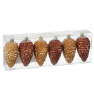 Χριστουγεννιάτικα στολίδια σε σετ, από την εταιρεία Edelman. Το σετ περιλαμβάνει 3 χρυσά στολίδια και 3 καφέ στολίδια σε σχήμα κουκουναριού. Είναι γυαλιστερά και κατασκευασμένα από ανακυκλωμένο πλαστικό υλικό για να μην σπάνε. Συνδυάστε διαφορετικά στολίδια για μία μοναδική γιορτινή διακόσμηση του δέντρου σας.