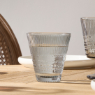 Ποτήρι νερού χαμηλό με μοντέρνα αισθητική. Είναι κατασκευασμένο από γυαλί σε γκρι απόχρωση με ανάγλυφο σχέδιο. Το γυαλί είναι εύκολο να καθαριστεί και δεν απορροφά μυρωδιές ή λεκέδες. Είναι συμβατό με το πλυντήριο πιάτων και μπορεί να καθαριστεί εύκολα χωρίς να παραμένουν υπολείμματα. Ιδανικό ποτήρι για να πίνετε το κρασί σας. Συνδυάστε το με τα υπόλοιπα προϊόντα του ίδιου σετ για ένα ολοκληρωμένο αποτέλεσμα. Χωρητικότητα 270ml.