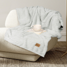 Υπέρδιπλη fleece κουβέρτα σε γκρι χρώμα με ανάγλυφο σχέδιο από την εταιρεία Nima. Είναι κατασκευασμένη από 100% flannel polyester βάρους 240gsm που την καθιστά ιδανική για το χειμώνα.