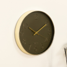 Ρολόι τοίχου με αθόρυβη λειτουργία σε πράσινο χρώμα με χρυσές λεπτομέρειες. Είναι κατασκευασμένο από μεταλλικό υλικό. Λειτουργεί με 1 μπαταρία AA LR6, η οποία δεν περιλαμβάνεται. Ιδανικό να τοποθετηθεί σε όλους τους χώρους του σπιτιού, καθώς δεν ακούγονται οι χτύποι του.