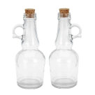 Μπουκάλια λαδιού και ξυδιού κατασκευασμένα από γυαλί. Είναι διάφανα και έχουν πώμα από φελλό σε μπεζ χρώμα. Διαθέτουν λαβή για εύκολη μεταφορά. Ιδανικό σετ για το τραπέζι σας. Χωρητικότητα 250ml