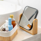 Επιτραπέζιος καθρέφτης για το μπάνιο ή για το μακιγιάζ από την εταιρεία εstia. Είναι κατασκευασμένος από μπαμπού σε φυσική απόχρωση με μαύρες λεπτομέρειες. Ο καθρέφτης είναι περιστρεφόμενος 360° και από την μια πλευρά είναι μεγεθυντικός που τον καθιστά ιδανικό για το μακιγιάζ σας.