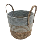 Καλάθι αποθήκευσης από την εταιρεία Mod. Είναι κατασκευασμένο από φυσική ψάθα σε μπεζ χρώμα με γκρι λεπτομέρειες. Διαθέτει λαβές για εύκολη μεταφορά. Ύψος με λαβές: 39εκ. Ιδανικό για την κουζίνα, το μπάνιο ή την τραπεζαρία σαν διακοσμητικό ή σαν αποθηκευτικό χώρο για μικροπράγματα. Συνδυάστε το με τα υπόλοιπα είδη της ίδιας συλλογής για ένα μοναδικό αποτέλεσμα στο χώρο σας.